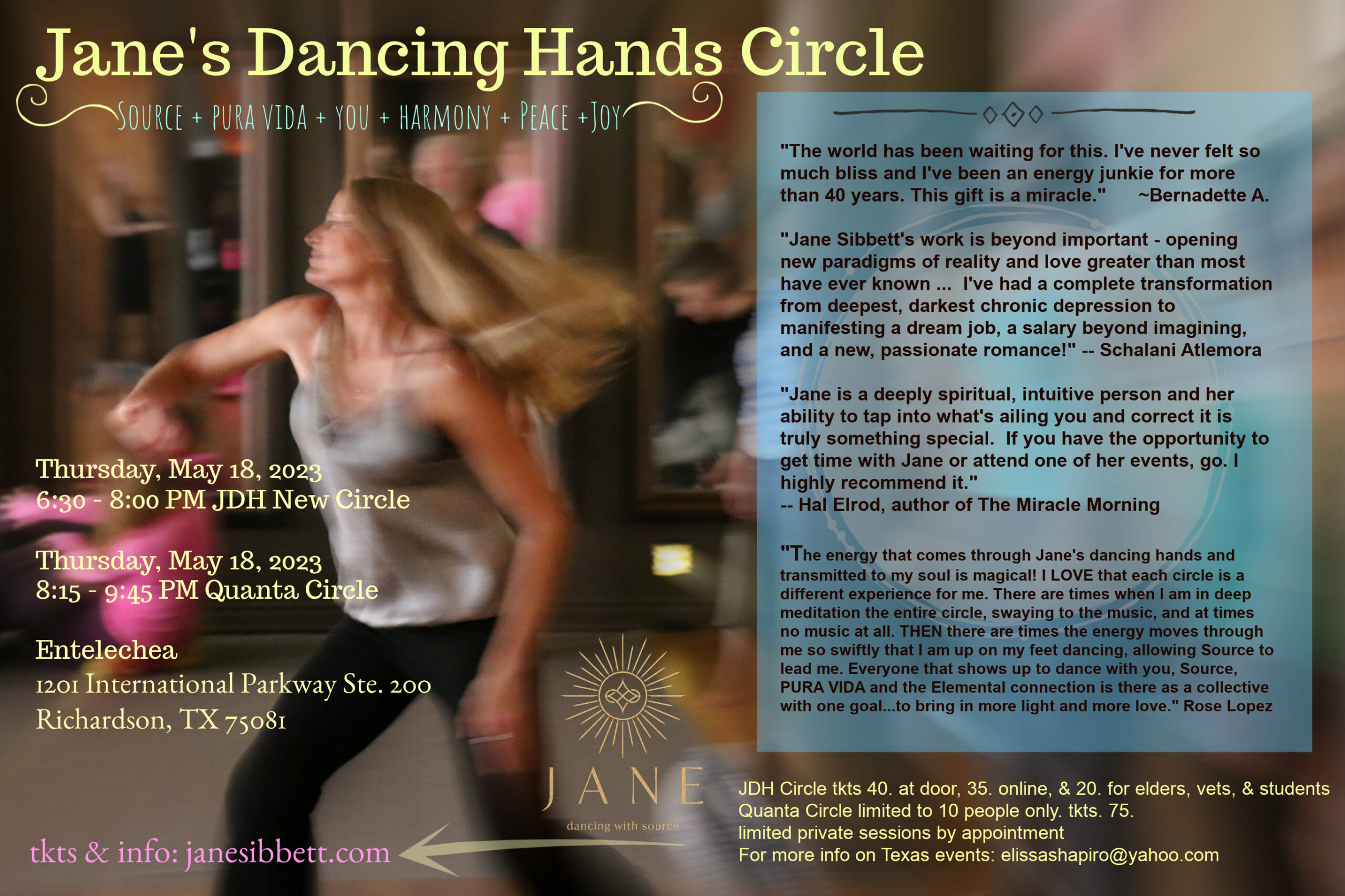 In perfect evolution of Jane’s Dancing Hands Circles, Jane brought the New Circle to communities that are primed and ready to move with this divine energy of joy and love.
