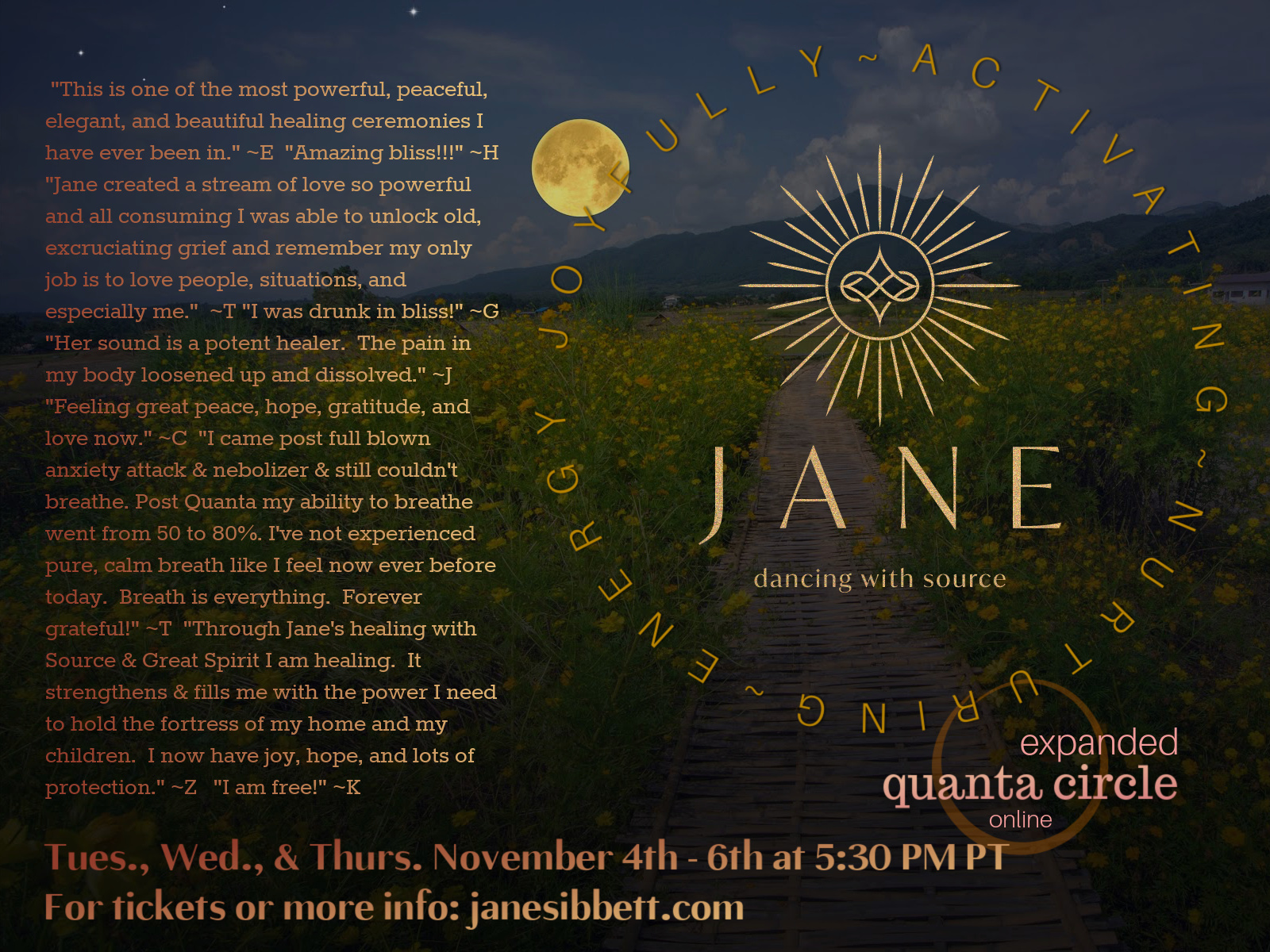 The Spring Equinox is nearly upon us! We are circling up and connecting deeply with Source Energy and the Pura Vida to celebrate this day of perfect balance between day and night, before we tip back into the lighter half of the year. We are dancing May 20th @ 7:00pm PT The Joyfully Activating Nurturing Energy of Source moves through the vessel of Jane, dancing her hands and body and allowing the potential for channeled messages to come through. These channeled messages, spoken first in the Language of Love and then translated into English, are often both soothing and uplifting, speaking to where you are now and leaving breadcrumbs of wisdom for you to discover later (read more about how this has happened for two of our consistent Quanta Circle attendees). The energy of this May Day Dance is potent, clearing that which does not serve and reigniting your inner fires. Source will meet you where you are, but will always encourage you to move forward into your happiest and healthiest future. Many have asked, does this really work online? Is the energy less online than in person? For those who have done both, some say they prefer online sessions because […]
